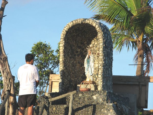 Fr. Placer also mentioned the simplicity and innate goodness of the vendors plying the beach who say, “Father, indi man kami pala-simba pero naga-agi kami sa grotto para mangadi.” (“Father, we are not frequent mass-goers but we pass by the grotto to pray.”) These same simple people told him that when the grotto was destroyed, their sale of rosaries went down but when the Virgin was re-installed, sales perked up again.